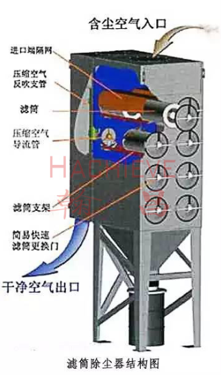 从某种原理来说滤筒除尘器与布袋除尘器的工作原理是相同的。区别如下。